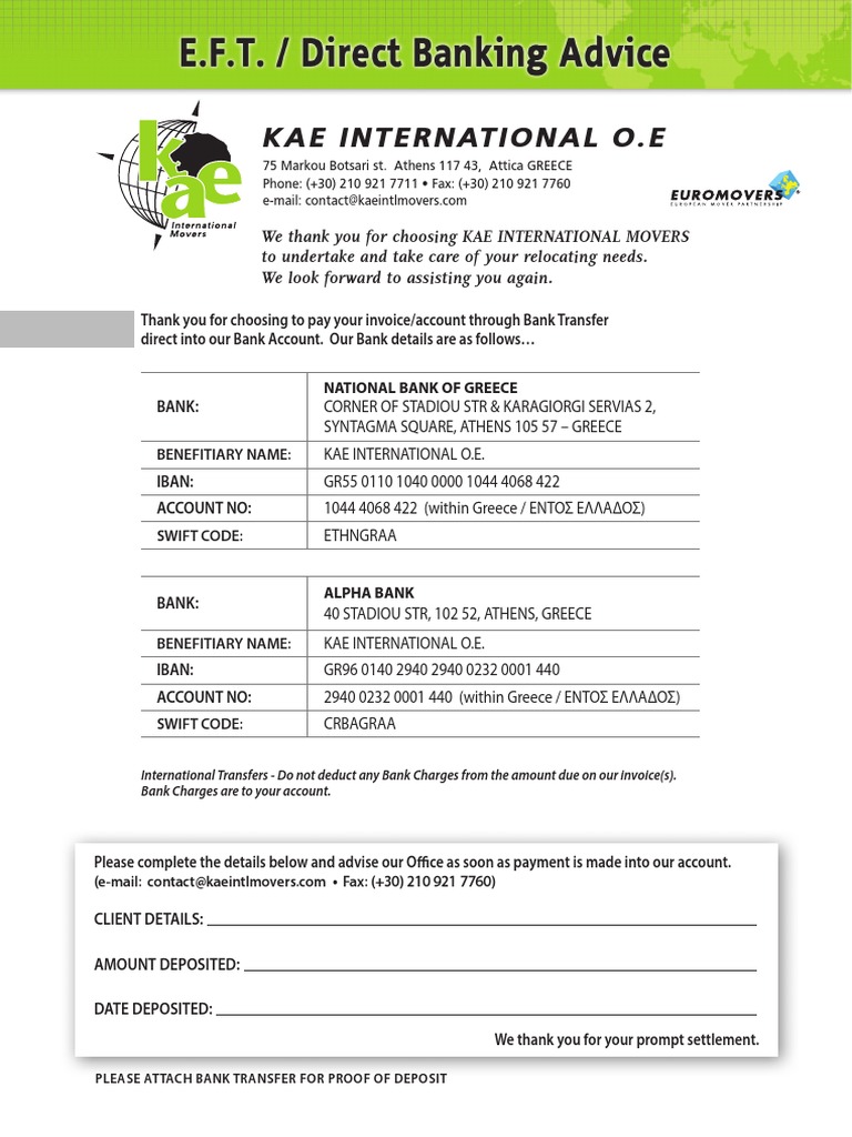 Kae International O E Wire Transfer Services Economics from imgv2-2-f.scribdassets.com Lets you convert a national account number into an iban, validate an iban, find bank information. Swift code / bic (bank identifier code) details for crbagraa and crbagraa___. View an example of a greece iban number format. 2 digits iban check digits; Σκοπός του iban είναι να διευκολύνει την αυτόματη επεξεργασία των διασυνοριακών. The swift code of alpha bank ae in athens, greece is crbagraa. All 11 digit codes refer to specific branches, while 8 digit codes (or those ending in 'xxx') refer to the head. A bban includes information about the domestic bank and account number.